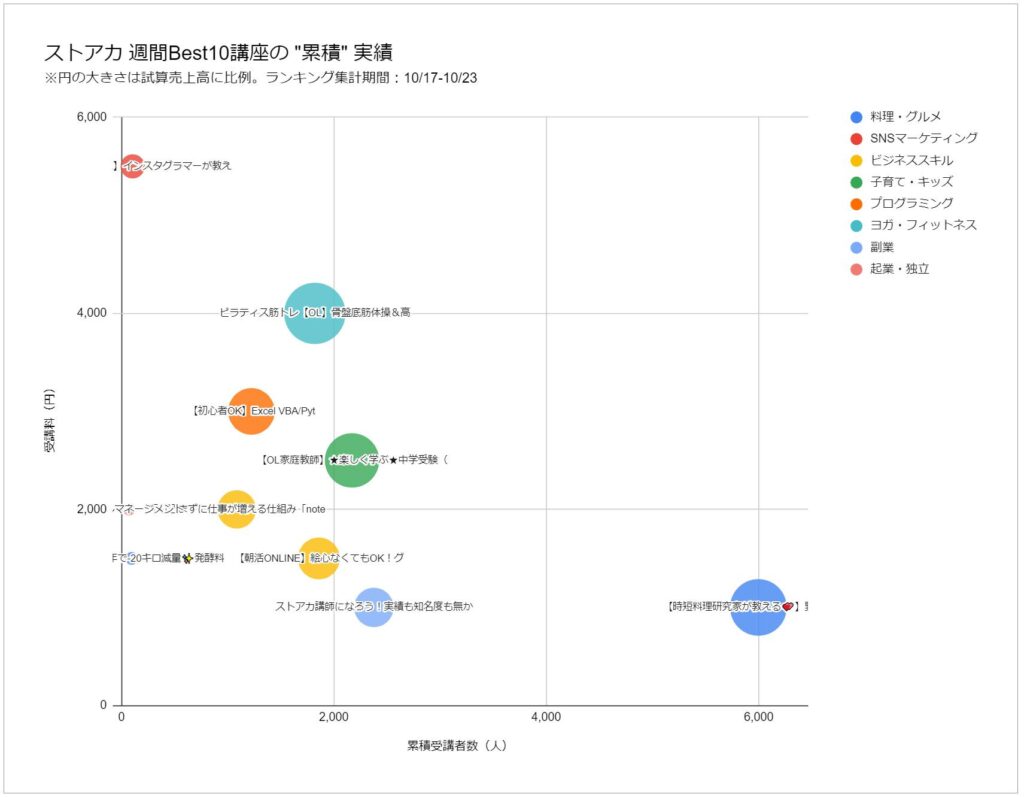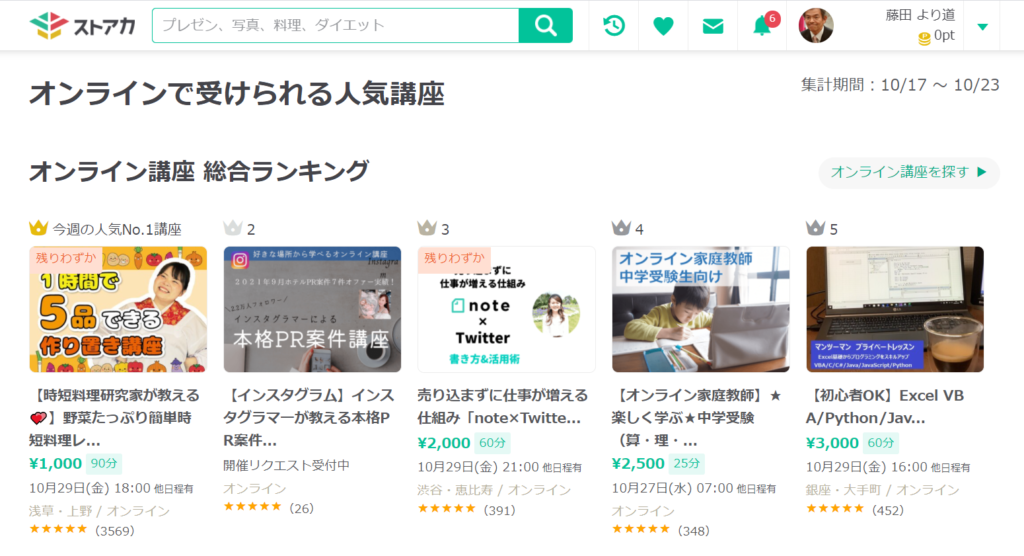 ストリートアカデミ(ストアカ)では毎週月曜日の朝に、前週に人気の講座トップ10を公開されています。